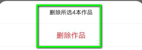 4、在底边弹出来的对话框中,点一下删除作品就可以批量删除多本书籍了。如图示例。